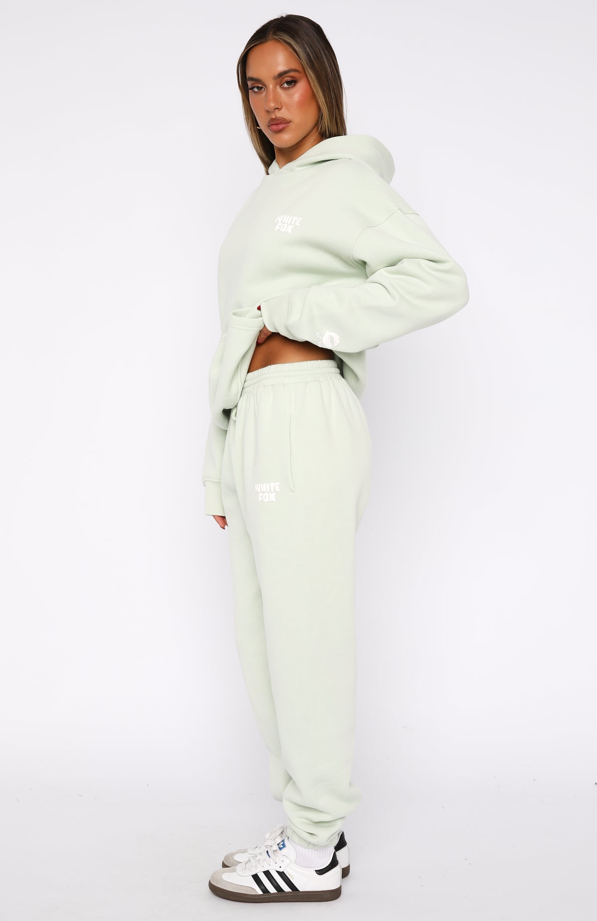 You asked and we answered. All your cute and comfy dreams are coming true in the 11th Street Keeping It Real Sweatpants Iced Matcha. Features a high elasticated drawstring waistband, elasticated ankles, side pockets, soft fleece fabric for extra comfort and logo detailing on side of leg. You can complete the tracksuit with the matching 11th Street Keeping It Real Oversized Hoodie Iced Matcha for the full vibe.