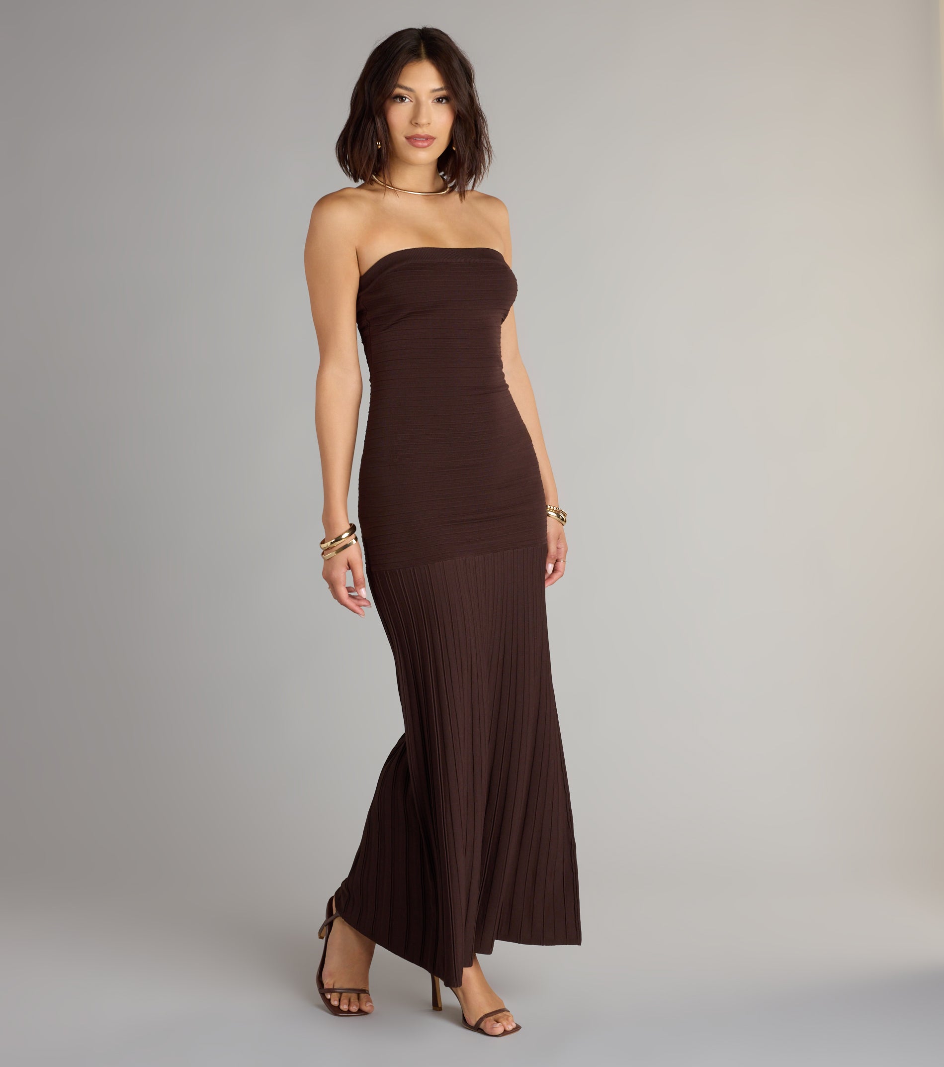 Effortlessly sleek, this strapless maxi is giving luxe with zero effort. The body-hugging fit and flowy hem make it your go-to for dinner dates or rooftop hotel bars.