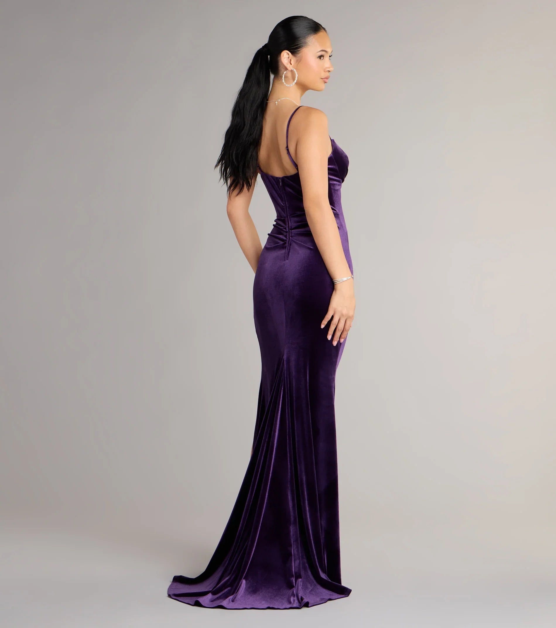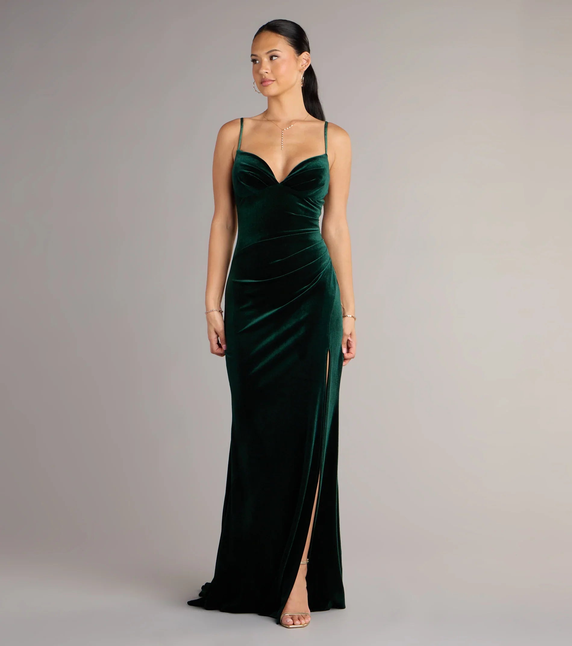 Opulent and unforgettable, the Ariel velvet gown drapes the figure with a liquid-like finish, featuring a sweetheart neckline and daring thigh slit. Finished with delicate straps and a floor-sweeping hem, it’s a timeless look that guarantees a showstopping entrance.