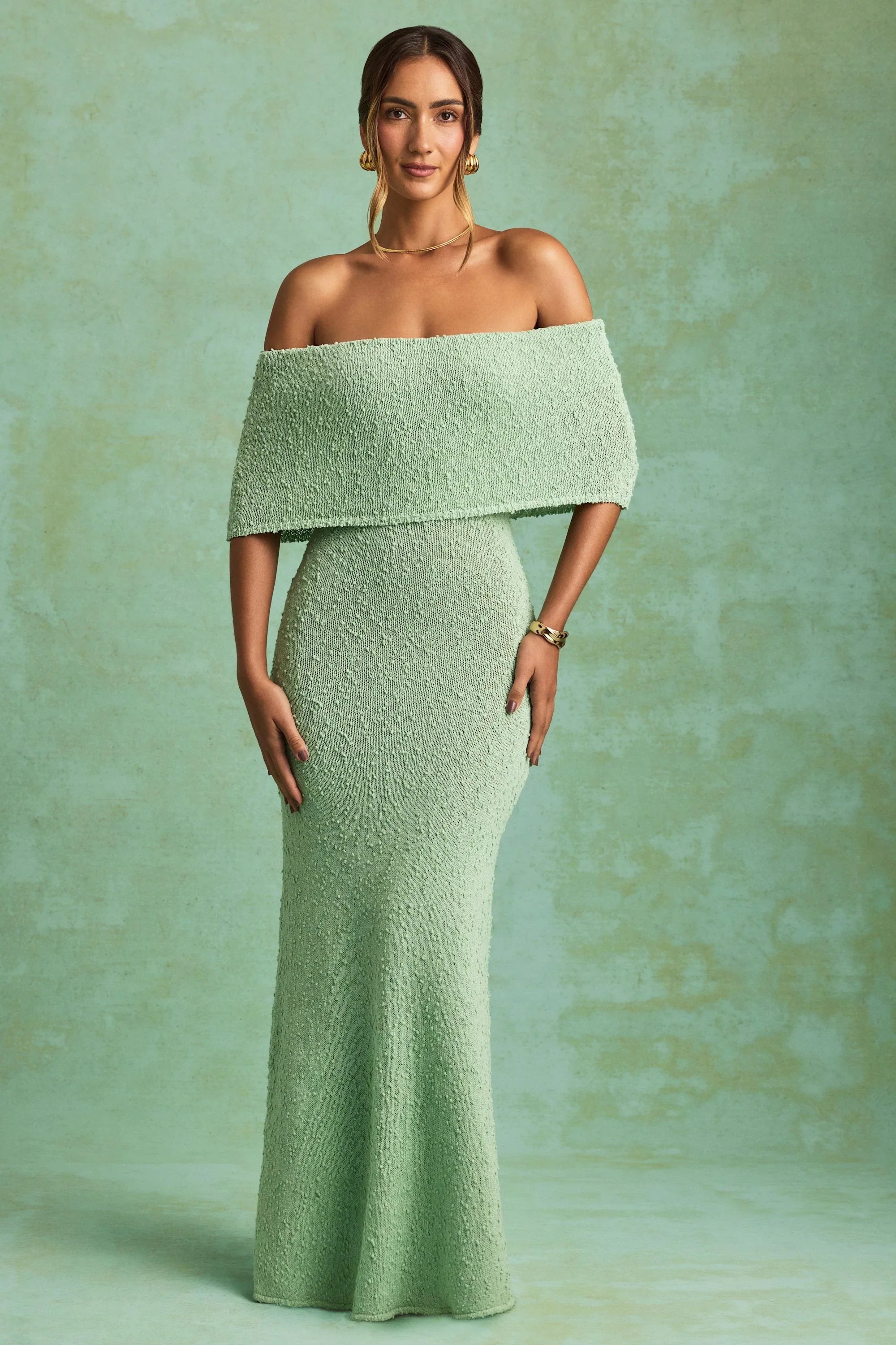 Summer dressing made easy. Designed for layering over your bikini on holiday or dressing up for dinner dates, the Naia maxi dress is crafted from lightly textured and subtly sheer bouclé knit fabric that hugs your curves. It’s cut to an off-shoulder silhouette with a foldover panel that can be adjusted for your perfect fit.