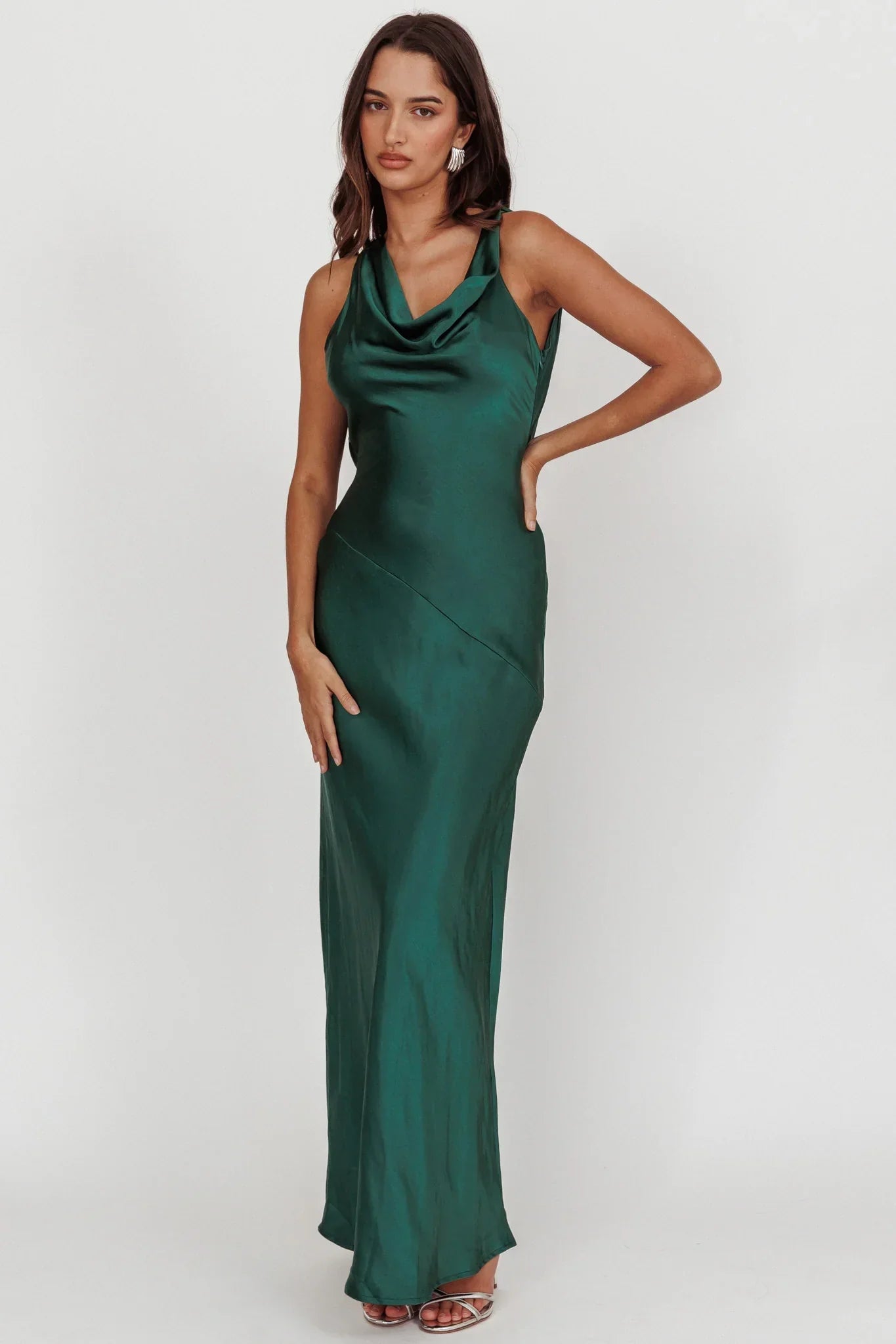 You'll look like you just stepped straight off the red carpet in our gorgeous Cassiopeia dress. Featuring a cowl neckline and an open, draped back. It's perfect for a wedding or special birthday celebration. Team it with diamante heels and a clutch for a show stopping look.