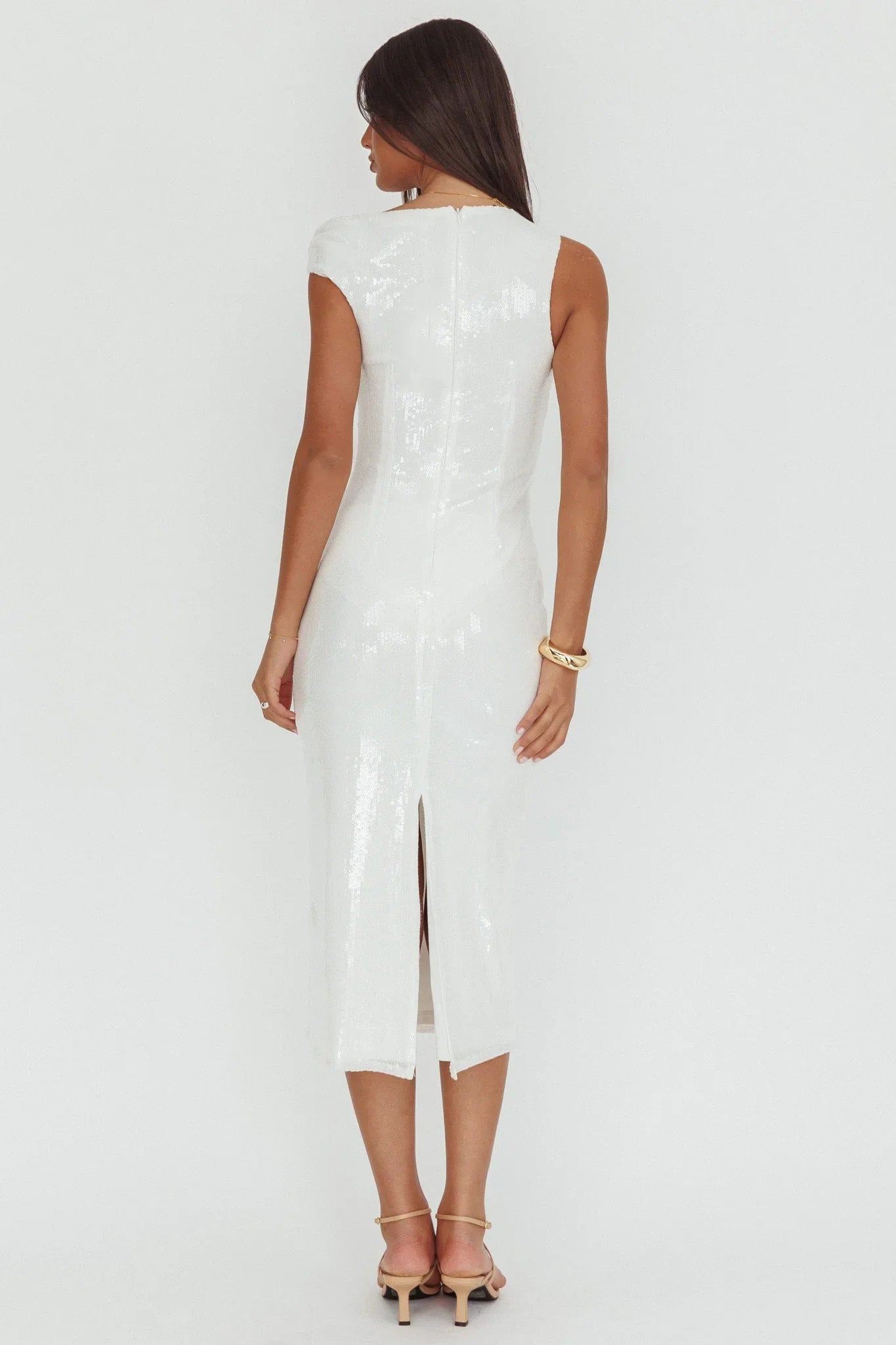 You will steal the limelight in our stunning Country Club midi dress. Featuring an asymmetric neckline and sequins throughout, it's perfect for homecoming or a bachelorette. Team it with strappy, silver heels and a purse for a head-turning look.