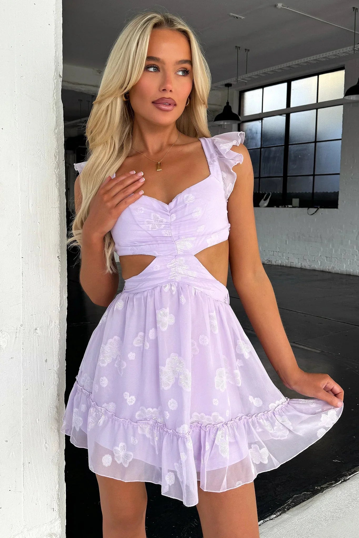 Get ready to turn heads in the Deborah Dress! This playful mini dress features unique side cut outs and a feminine tie up back. The beautiful flower print and double lining add a touch of elegance, while the elasticated waistband and flowy skirt provide comfort and style. Complete your look with gold jewellery, heels, and a matching bag!