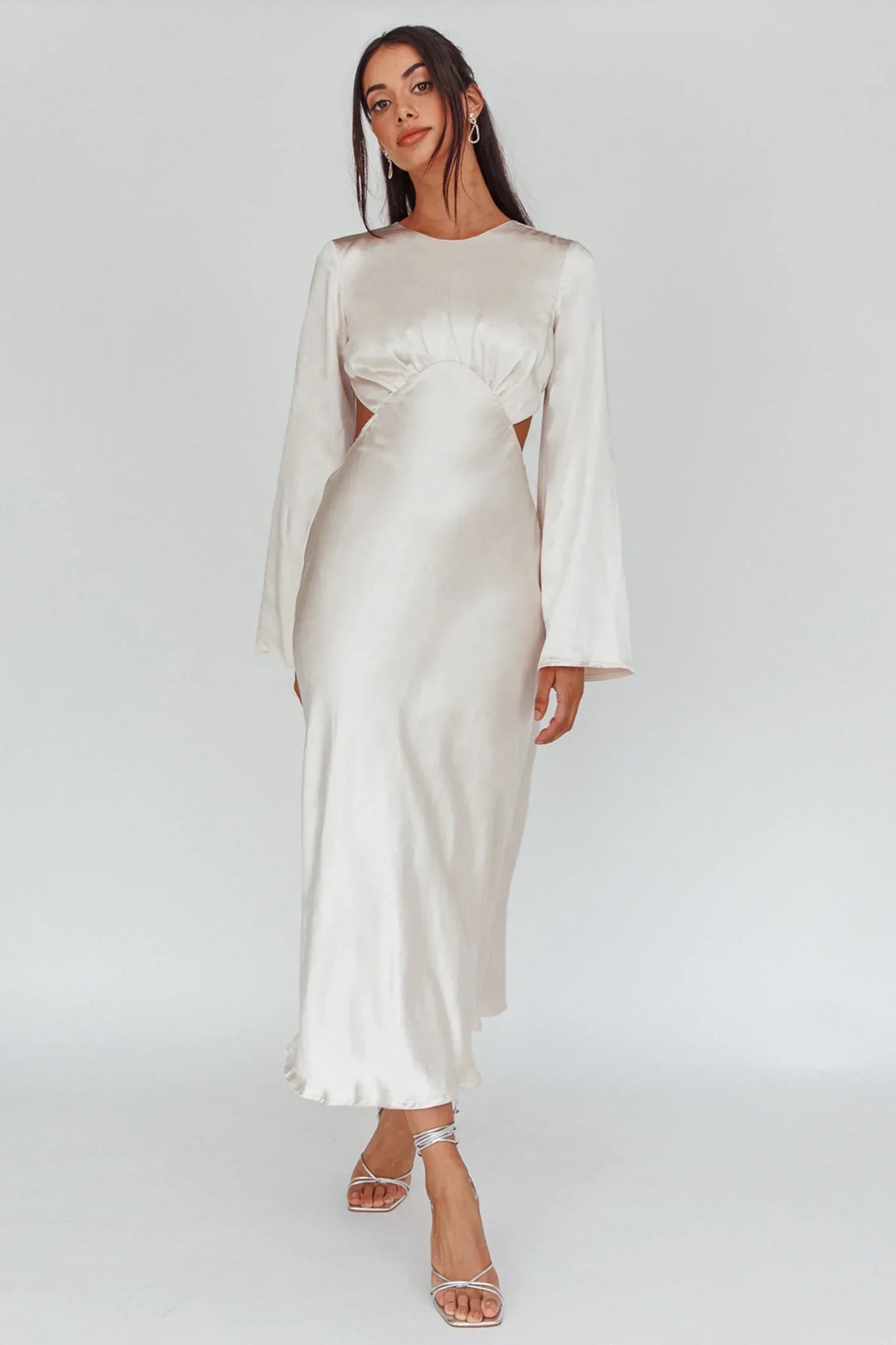 You'll go straight to the best-dressed list in our chic Doting dress. Featuring an open back and long bell sleeves. It's perfect for a special occasion or birthday celebration. Team it with mules and a tote for a head-turning look.