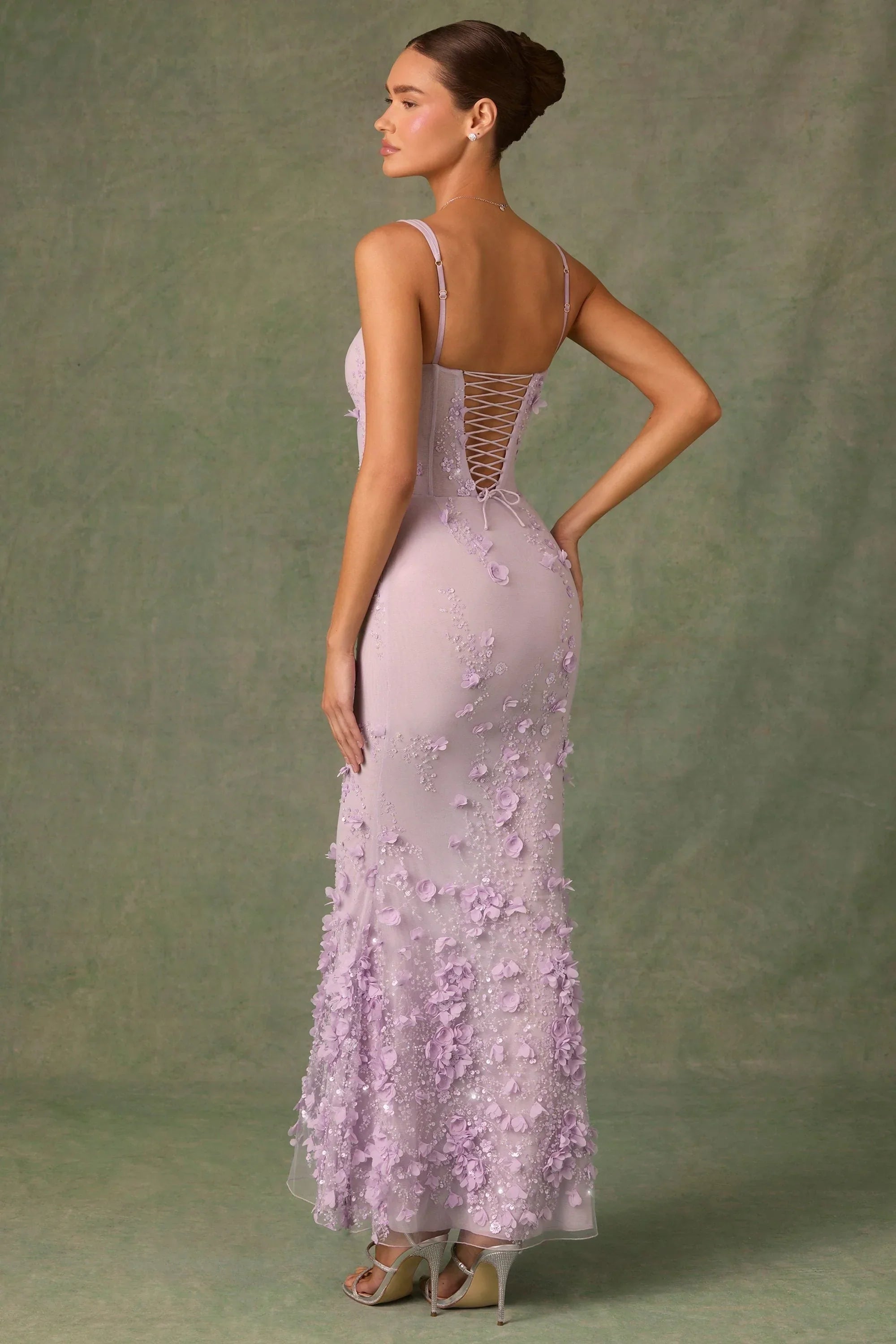 Wearable works of art for your most special occasions, the Vasanta gown is adorned with delicate tonal floral appliqués brought to life with perfectly placed sequin embellishments. It’s crafted from lightweight premium mesh that hugs your curves and is lined with signature power mesh for a non-restrictive sculpting effect. It’s cut to a classic fishtail silhouette with lace-up detailing at the back and adjustable straps for your perfect level of support.