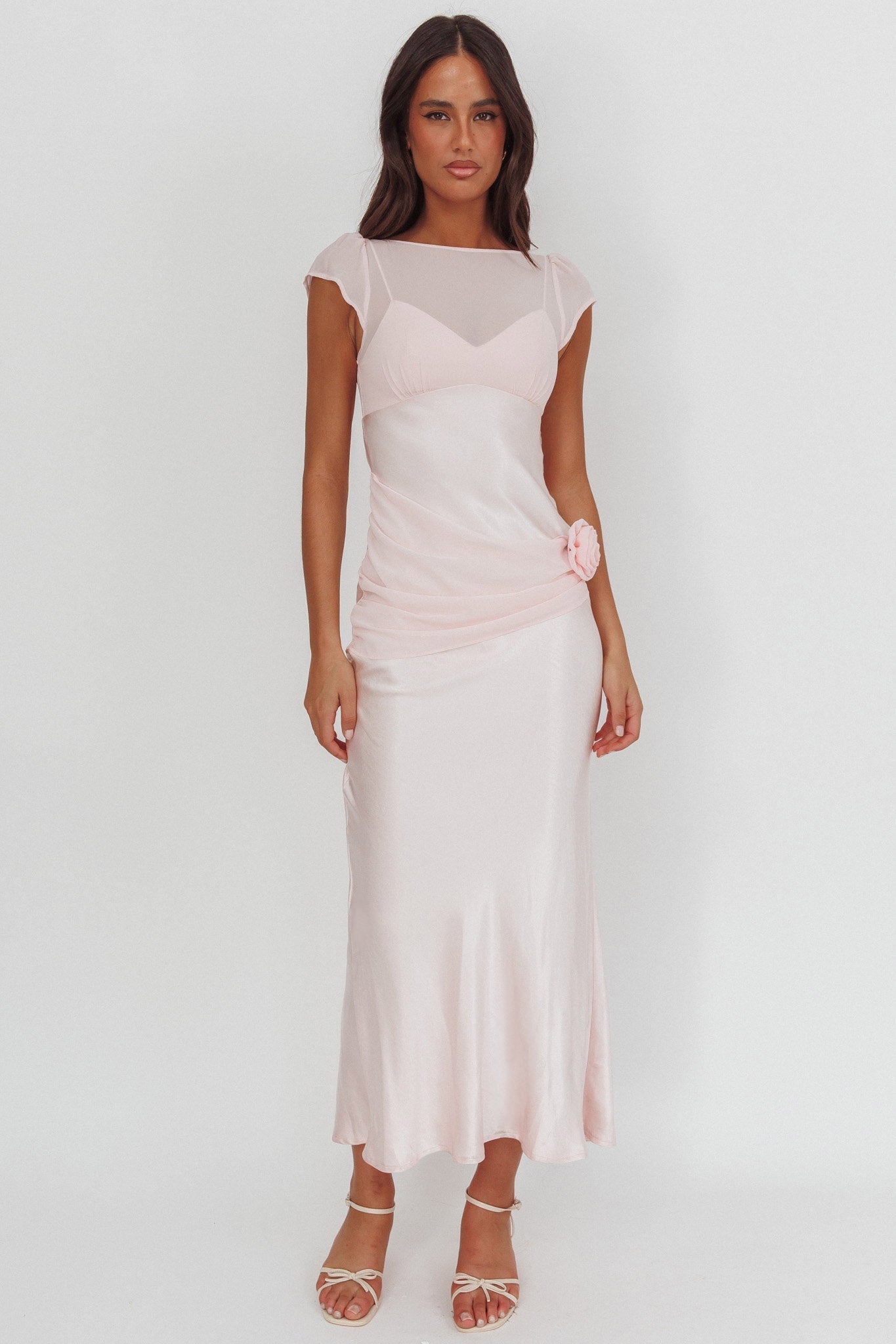 Hello, gorgeous! You will turn heads in our stunning Enchanted Dusk dress. It features the prettiest chiffon details and super cute cap sleeves. It's perfect for a wedding or special event. Team it with diamante heels and a clutch for an unforgettable look.
