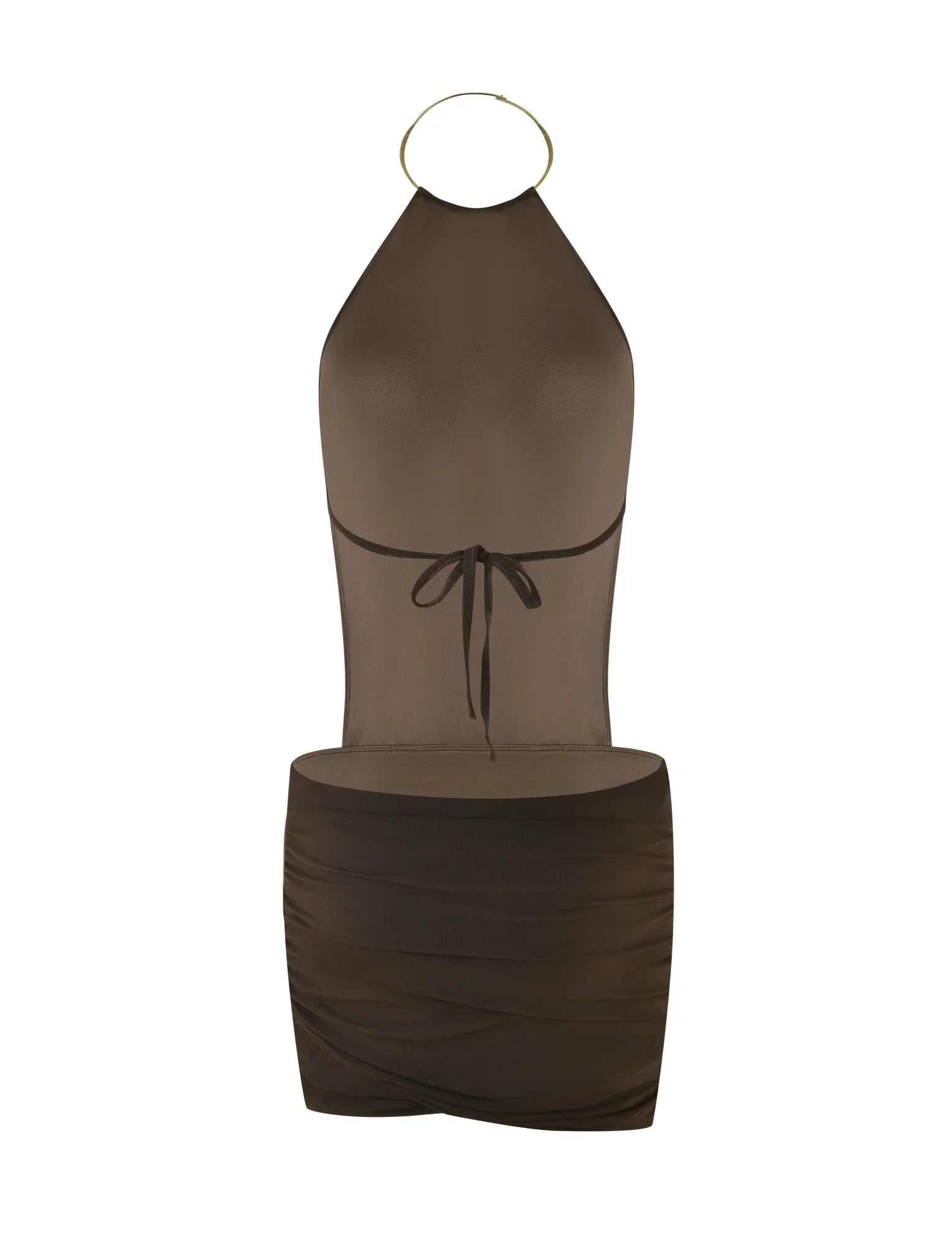 Chocolate brown high neck mini dress