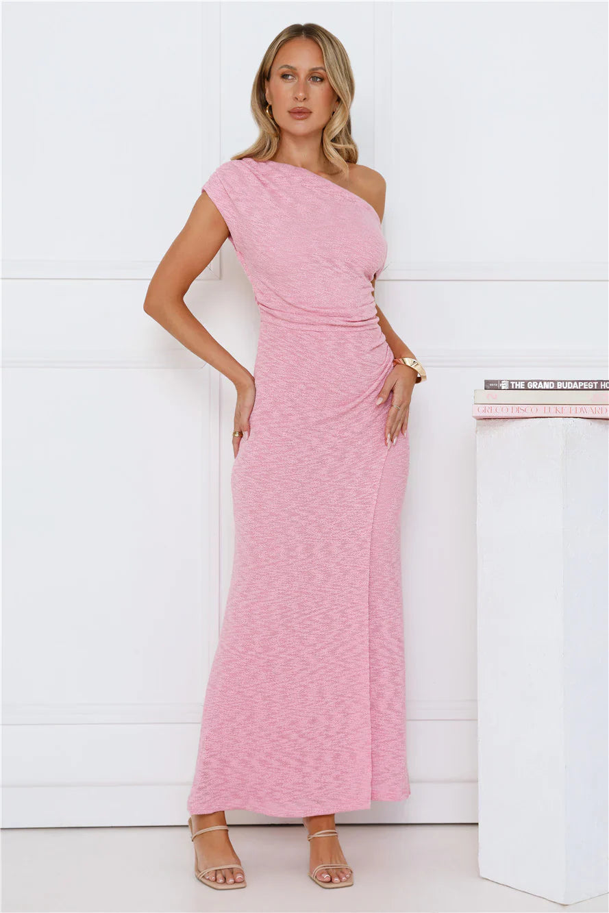It’s your style era, and you’re owning it. The In My Style Era Off Shoulder Maxi Dress features a dreamy textured stretch fabric, flirty off-the-shoulder neckline, and a split for that touch of sass. Whether it’s date night or girls' night, this maxi is made to stand out—just like you. Style with heels.