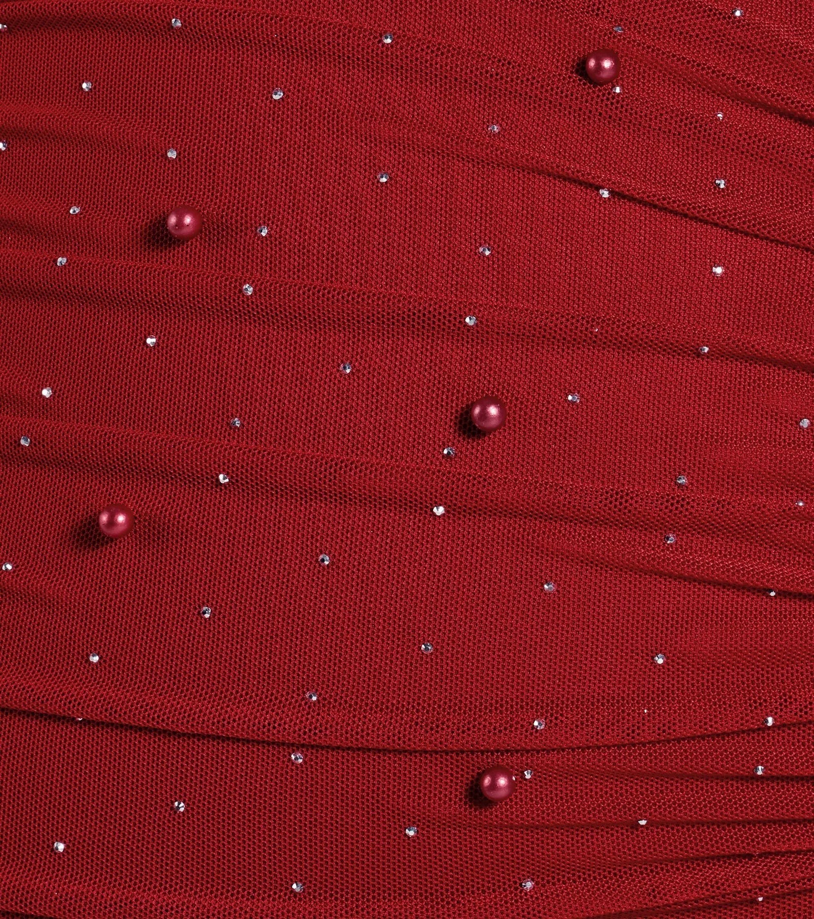 Create an iconic party look with this gorg rhinestone and pearl embellished mini dress! It features a sleeveless sweetheart neckline with a cowl draped overlay, a built-in padded bust, adjustable spaghetti straps for a customized fit, a mini-length hem, side and back ruching, a bodycon silhouette, and all-over mini rhinestone and faux pearl embellishments for a stunning glam vibe. The sheer mesh fabric includes a full knit lining. Style this mini-length dress for your next night out with rhinestone statement earrings and .