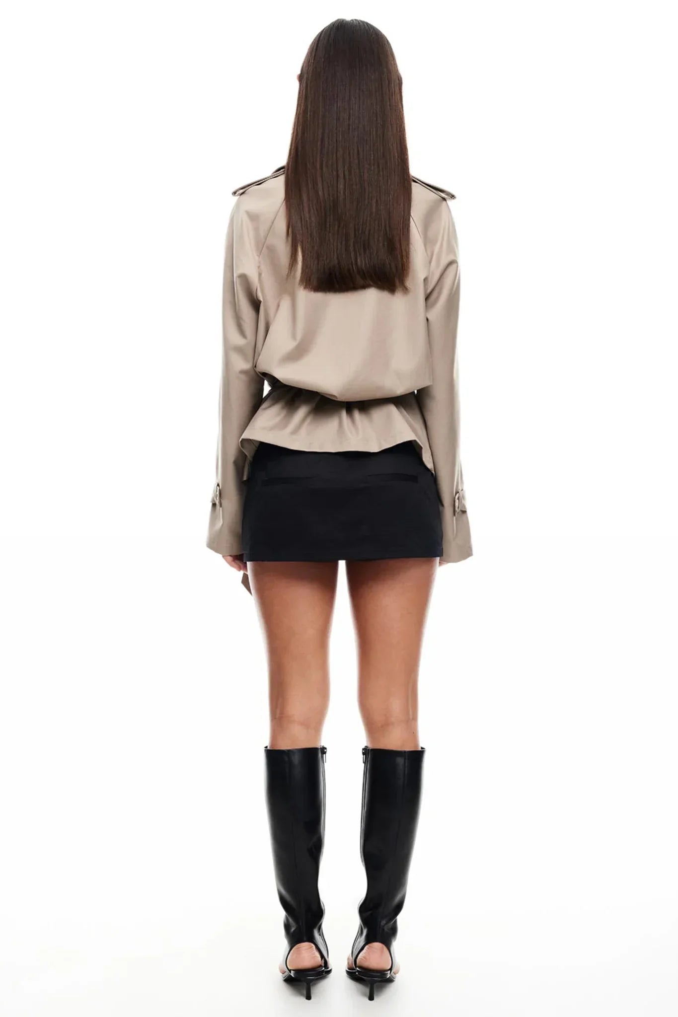 Step into timeless sophistication with the Cropped Trencherous Coat by LIONESS. It's a wardrobe staple that effortlessly combines classic style with contemporary elegance. The epitome of versatility, it seamlessly transitions from day to night, offering both style and functionality for any occasion. Whether you're running errands in the city or exploring the countryside, this coat provides the perfect layer of warmth and style.
