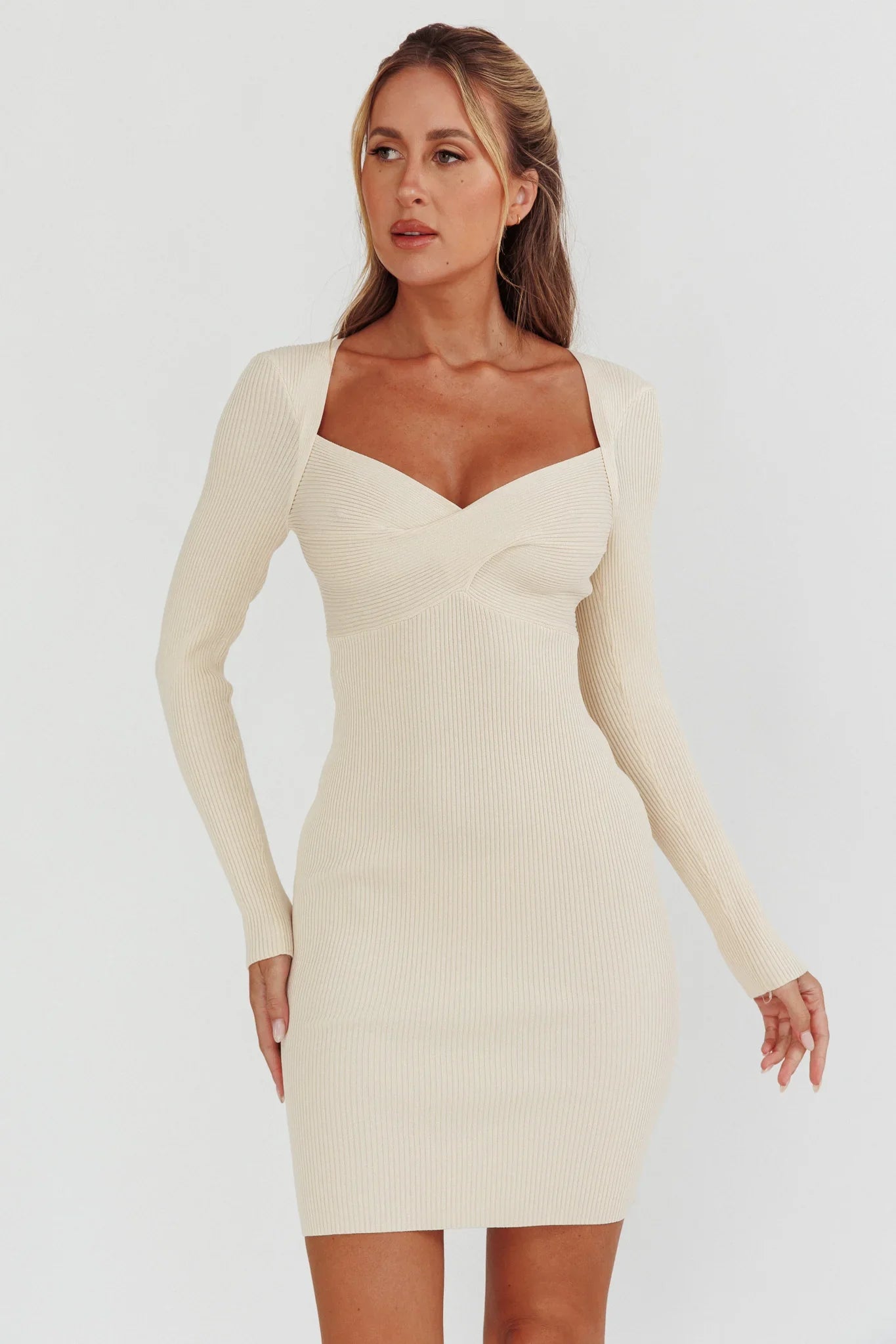 Make them stop and stare in our chic Maribeth mini dress. It features a twist detail in the bust and stretchy, ribbed knit fabric that hugs your curves. It's perfect for a flirty dinner date teamed with boots and a hobo bag for a look we are loving.