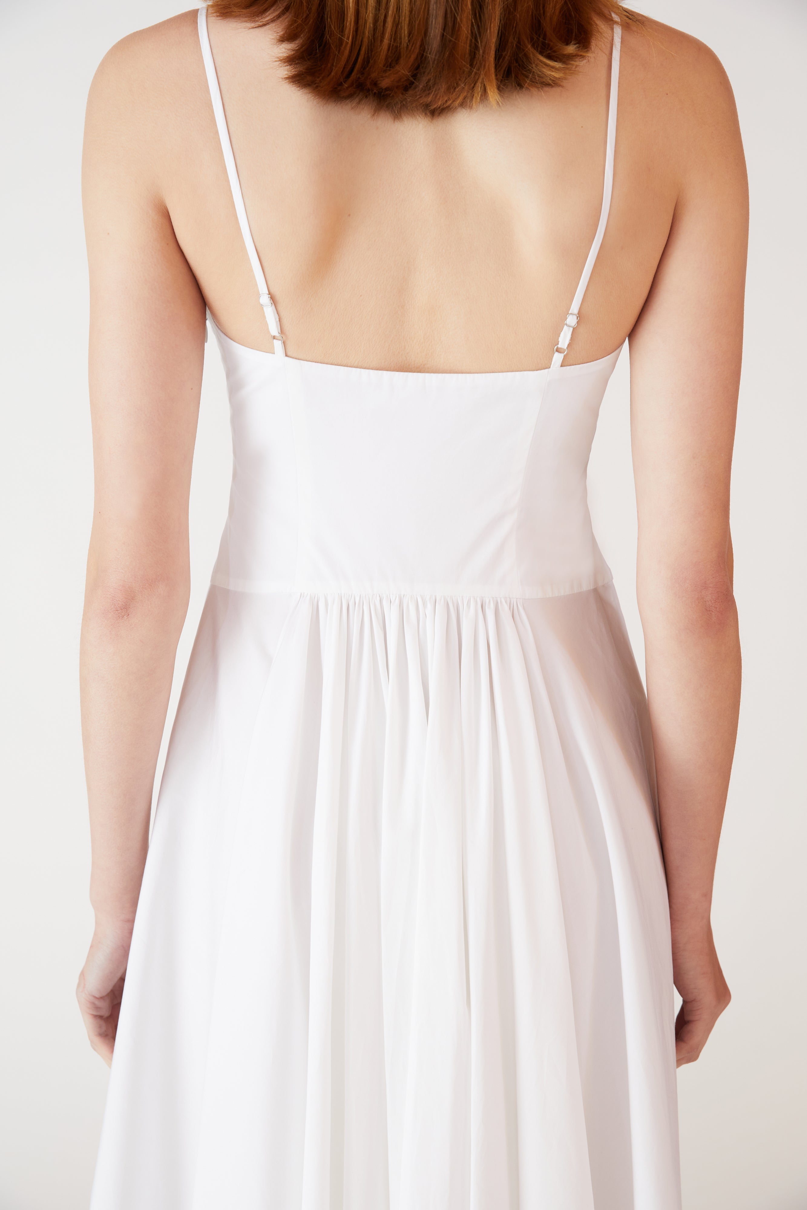 The Lady Cotton Dress is made from a soft, breathable cotton, designed and crafted in NYC. This tea length dress features delicate spaghetti straps and a flowy silhouette with gathered rouching at the center back. The perfect alternative to the classic Silk Princess Slip Dress, the Cotton Princess Slip Dress is a great option for those who prefer a more casual and comfortable feel.